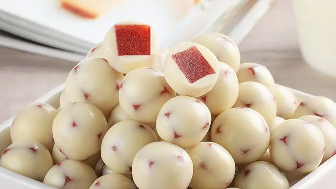 保留山楂細(xì)膩口感 結(jié)合酸奶的奶味 一顆入口 酸甜奶香在舌尖綻放